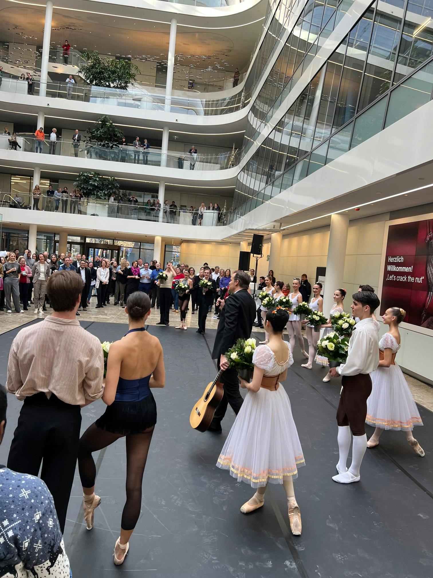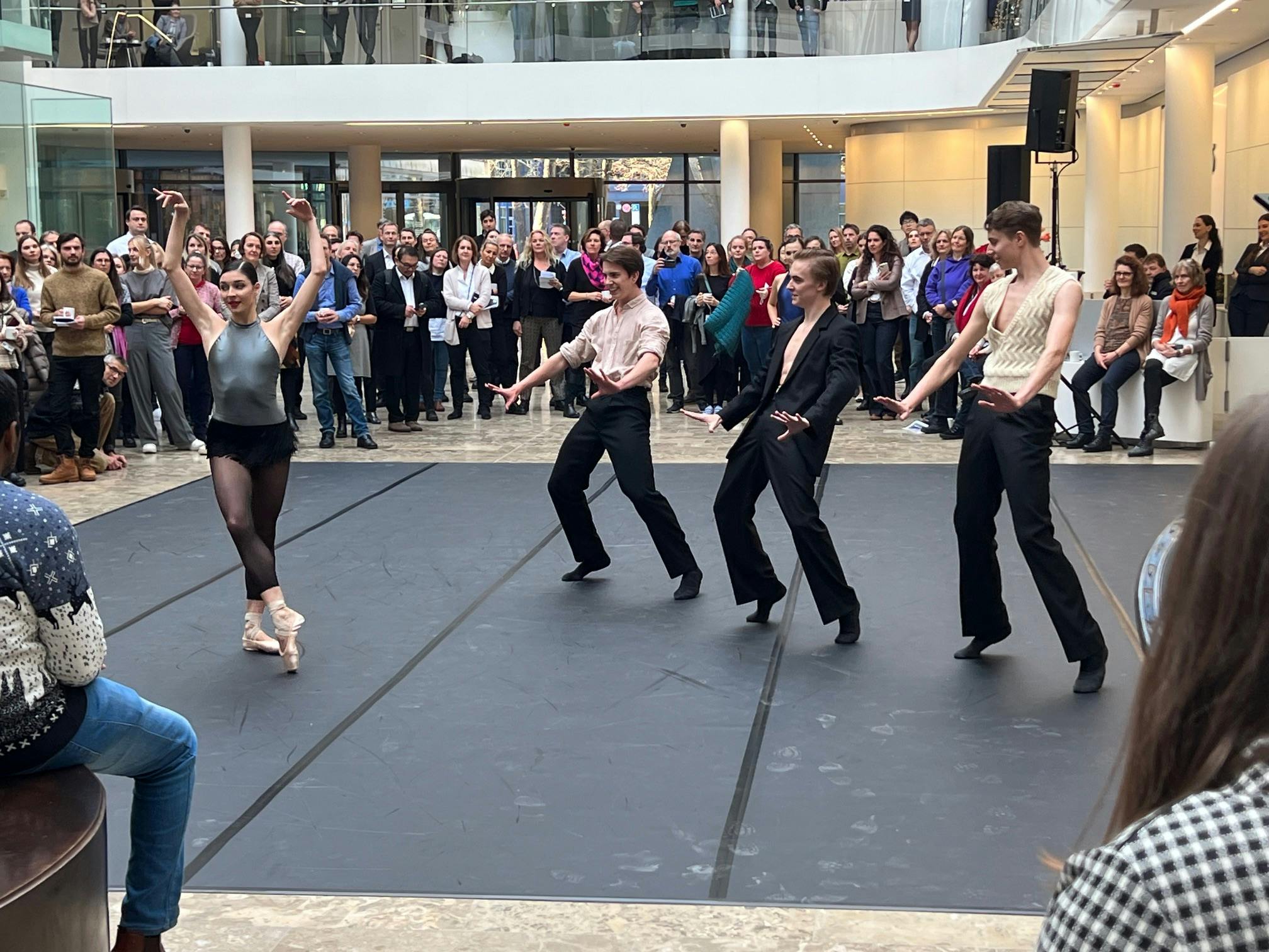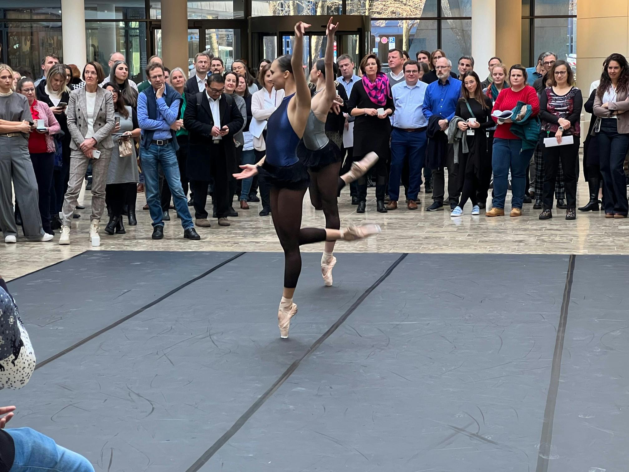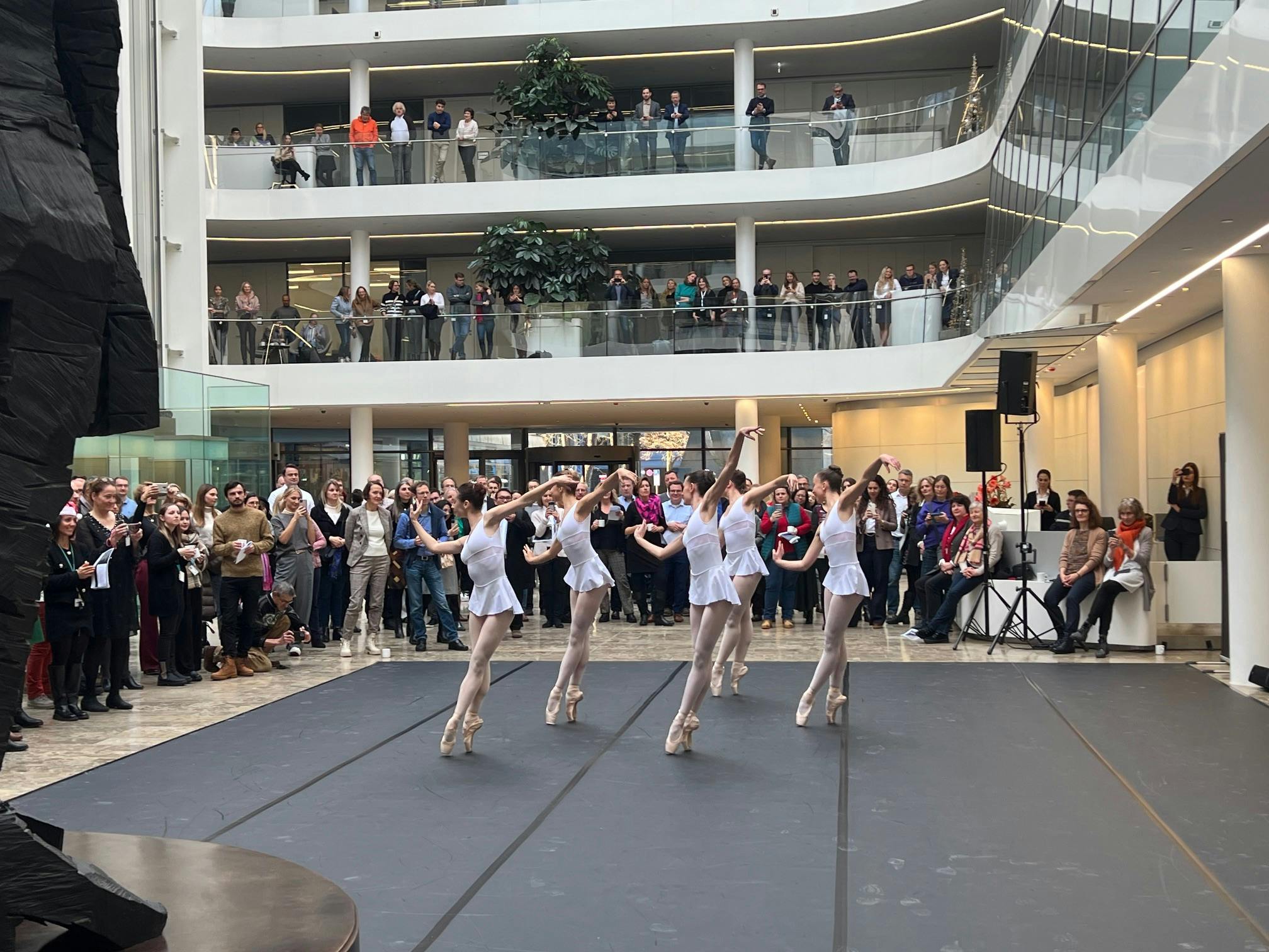 Das Bayerische Junior Ballett München und Studierende der Ballett-Akademie der Hochschule für Musik und Theater München traten im Rahmen des Siemens Arts Programms zur jährlichen Weihnachtsfeier im Atrium der Siemens-Zentrale am Wittelsbacherplatz auf.