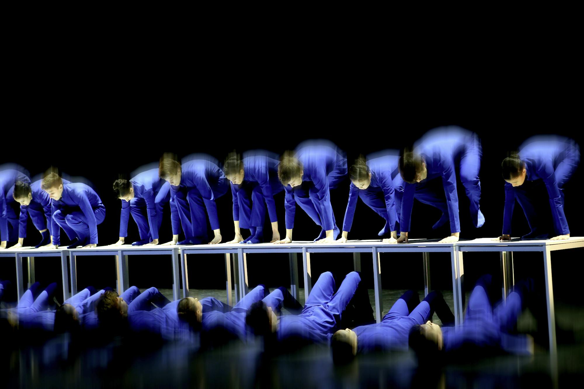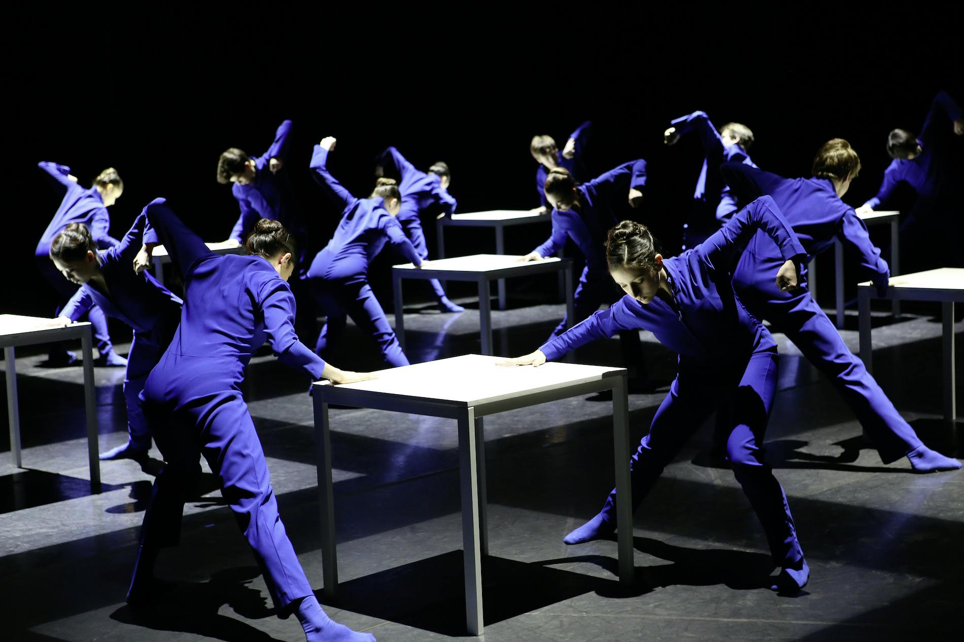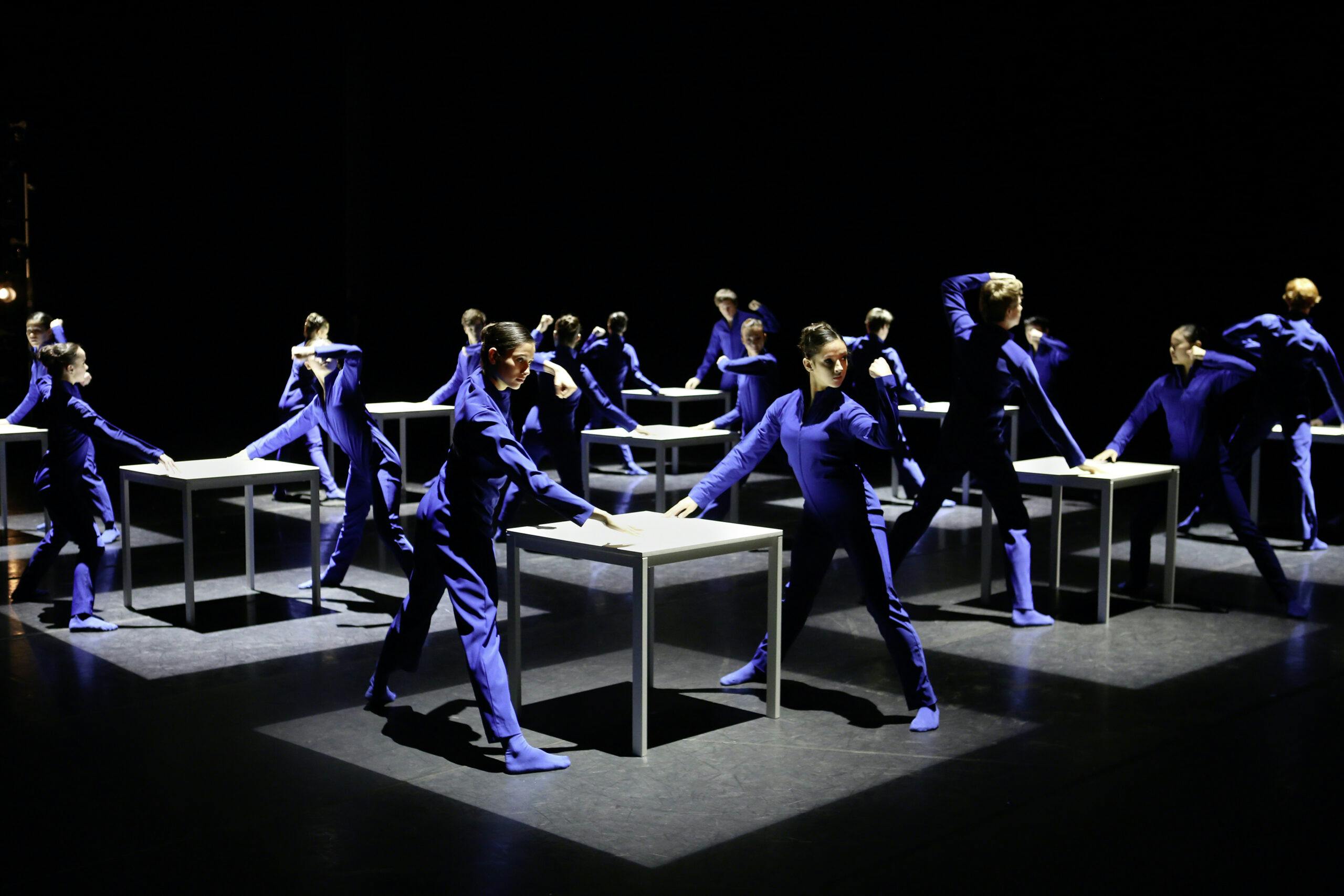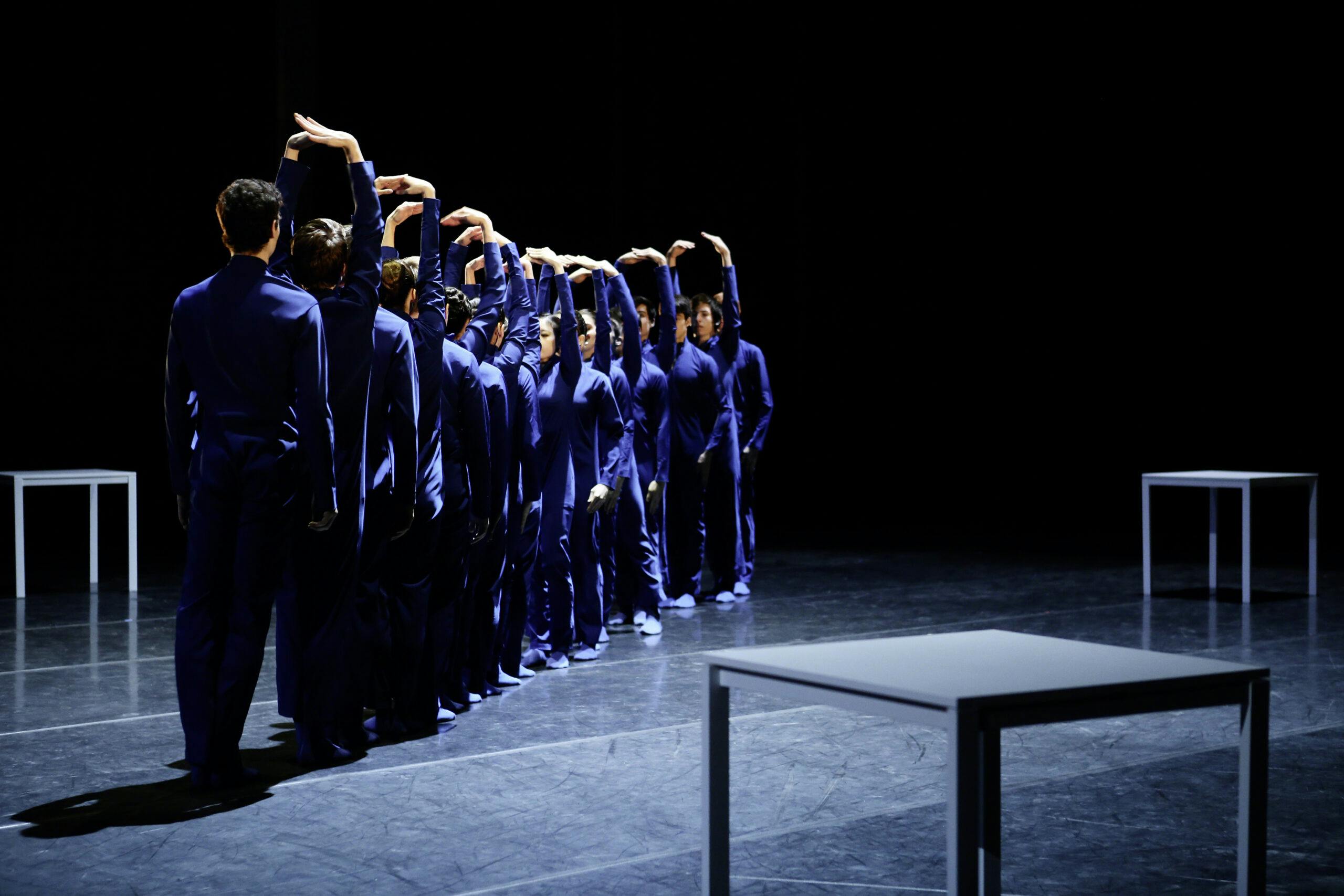 Die Choreographie für »JIT« ist inspiriert von der Industriellen Revolution, unserem heutigen Kapitalismus und Konsumverhalten, sie reflektiert über die gewaltigen Hallen, welche mit Maschinen und Robotern gefüllt sind, die von tausenden Arbeitern gesteuert werden und als Versprechen für ein besseres Leben stehen.