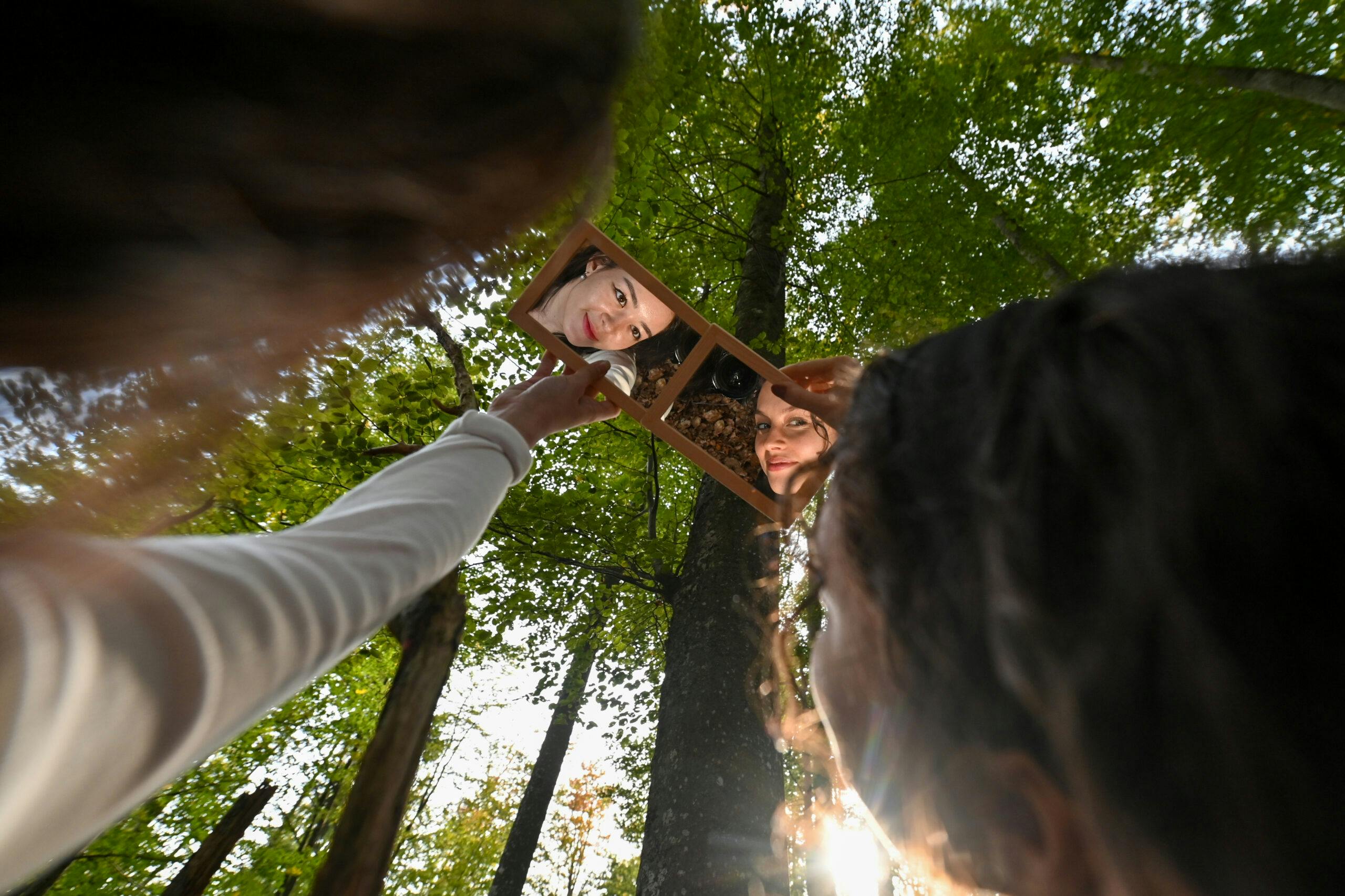 Shortly beforehand, however, the young Romanian was anything but enchanted by the wilderness. As the group (16 dancers from 13 nations) ascended along the treetop path, she was gripped by a fear of heights and, having reached the top at a height of over forty metres, had to deal with a swarm of winged ants that were preparing to settle in her hair on their late summer wedding flight.