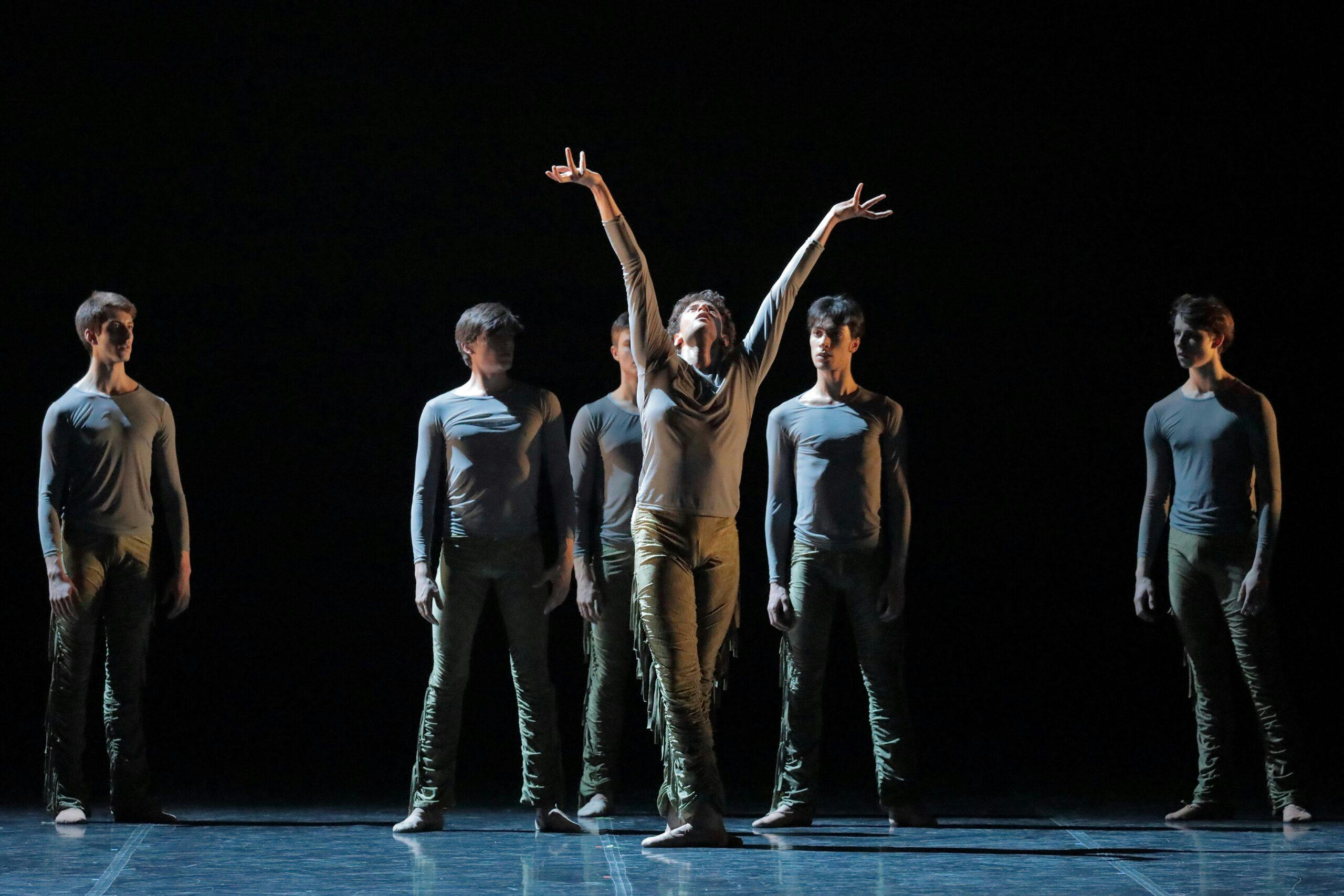 At its best, the marriage of music and dance acts as a motor to drive the creativity of a new work. Xin Pen Wang’s 2019 piece «Im Wald», which was created for seven men of the company, uses the orchestral score «Vajrayӑna» by the composer Camile Pépin to explore concepts of Eastern philosophy and metaphysics.