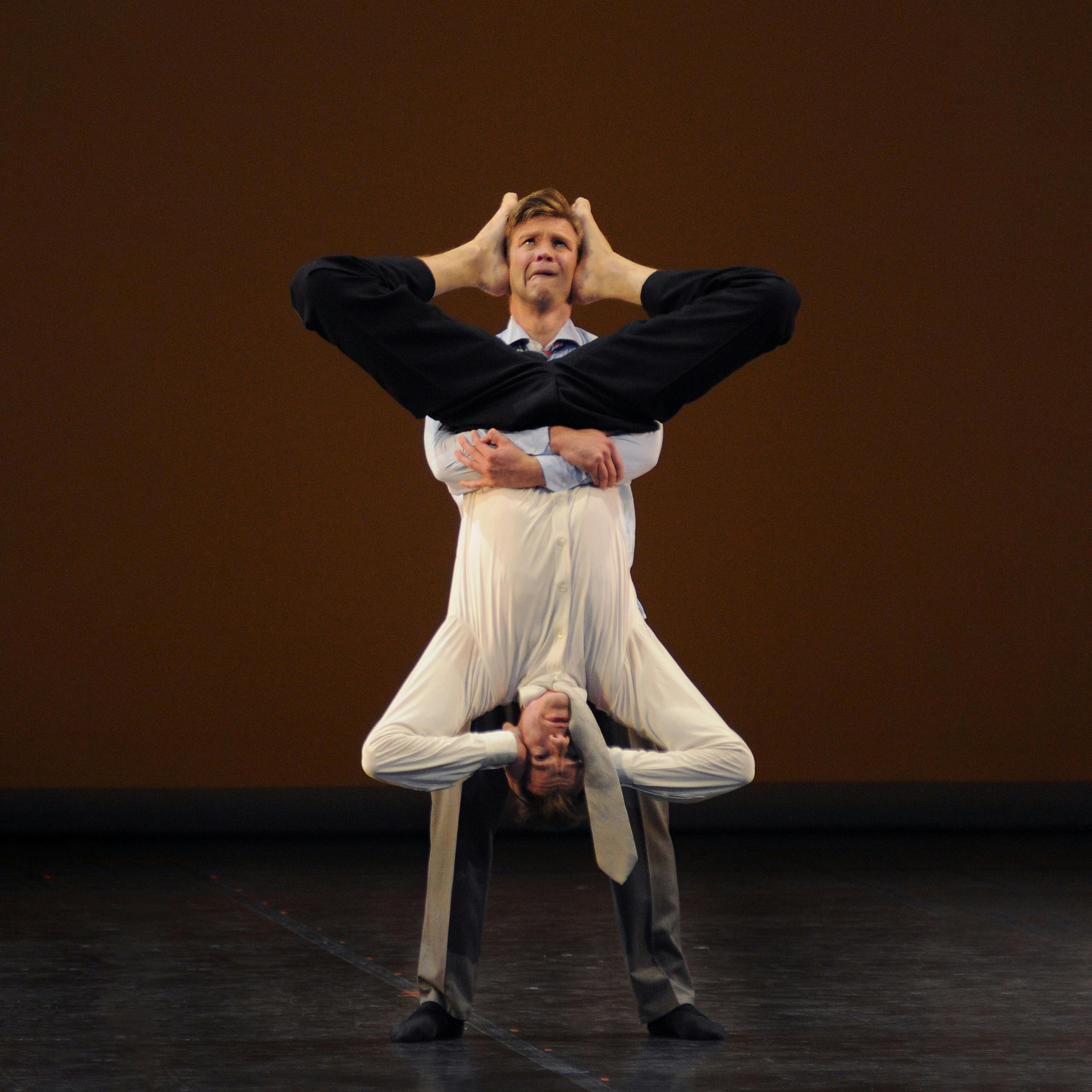 Gekleidet in Hemd und Krawatte, einer Kleidung, die man gemeinhin mit der Geschäftswelt assoziiert, finden sich zwei Männer in einer komischen Zwickmühle....Sollen sie der Banalität ihres täglichen „nine-to-five“-Pensums folgen oder finden sie Trost im intuitiven Erfassen der Rhythmen, die sich unter der Oberfläche ihrer Identitäten bewegen? Wie man auch immer Jaroschinckis choreografische Studie deuten mag, sobald die Walzerrhythmen aus Tschaikowskys bekanntesten Schwanensee-Ausschnitten erklingen, ist es schwer, sich dem Rausch der ansteckenden Begeisterung zu entziehen. «Intuition Blast» ist ein herzerwärmendes und freudiges Stück, das uns alle mit unserer eigenen inneren Reise voller freudiger Entdeckung und verspielter Freude verbindet!